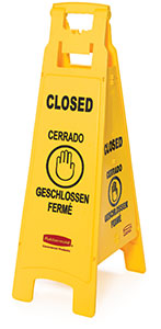 Closed warning message imprinted in English, French, German and Spanish for effective communication to broad audiences