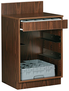 Waitress Station, 2 ft with Glass Rack Slides, Walnut Finish - Assembled