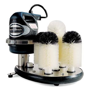 Four standard size black/white brushes and one 8" center white brush are designed to tackle the toughest cleaning jobs. The taller center brush cleans tall glasses better and ensures all outside edges are cleaned.